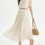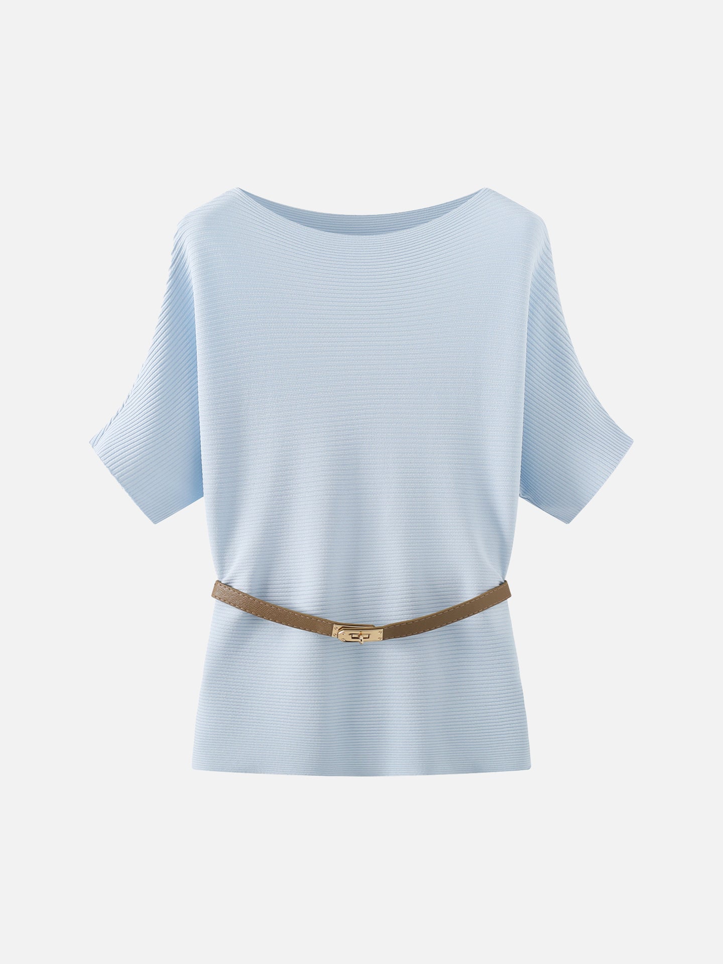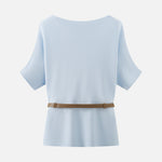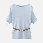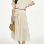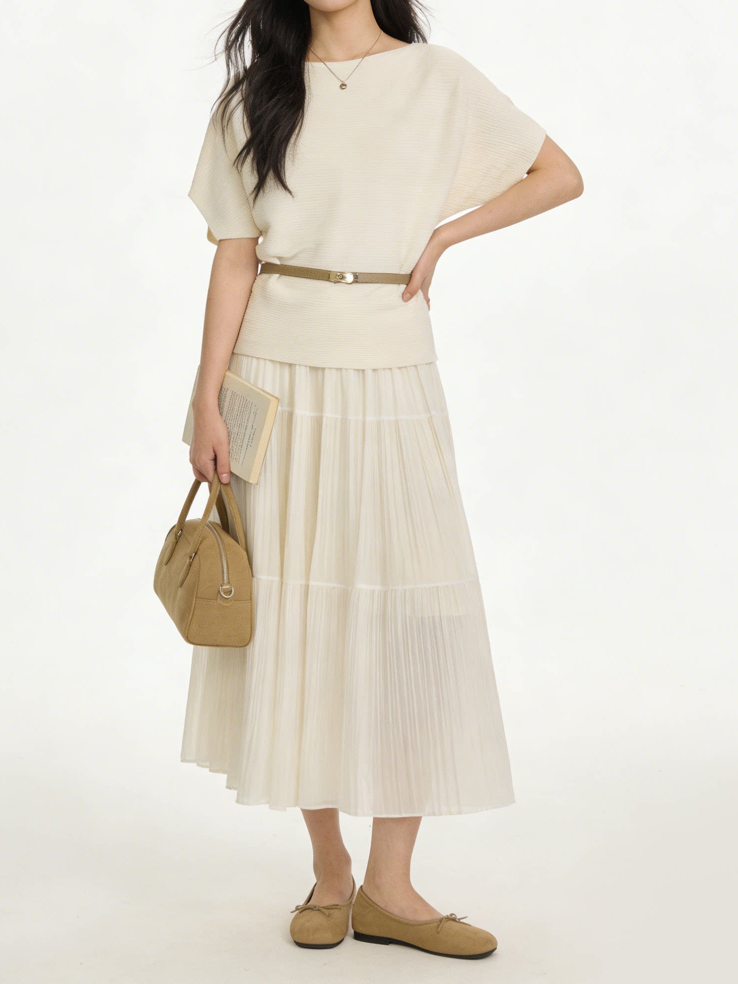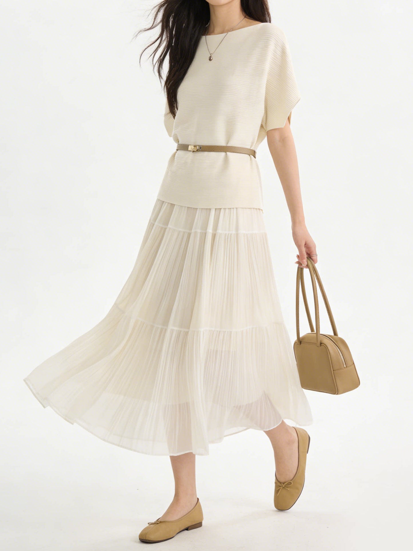 ☆半袖デザインが気になる二の腕もさりげなくカバーしつつ、抜け感のあるスタイリングに。