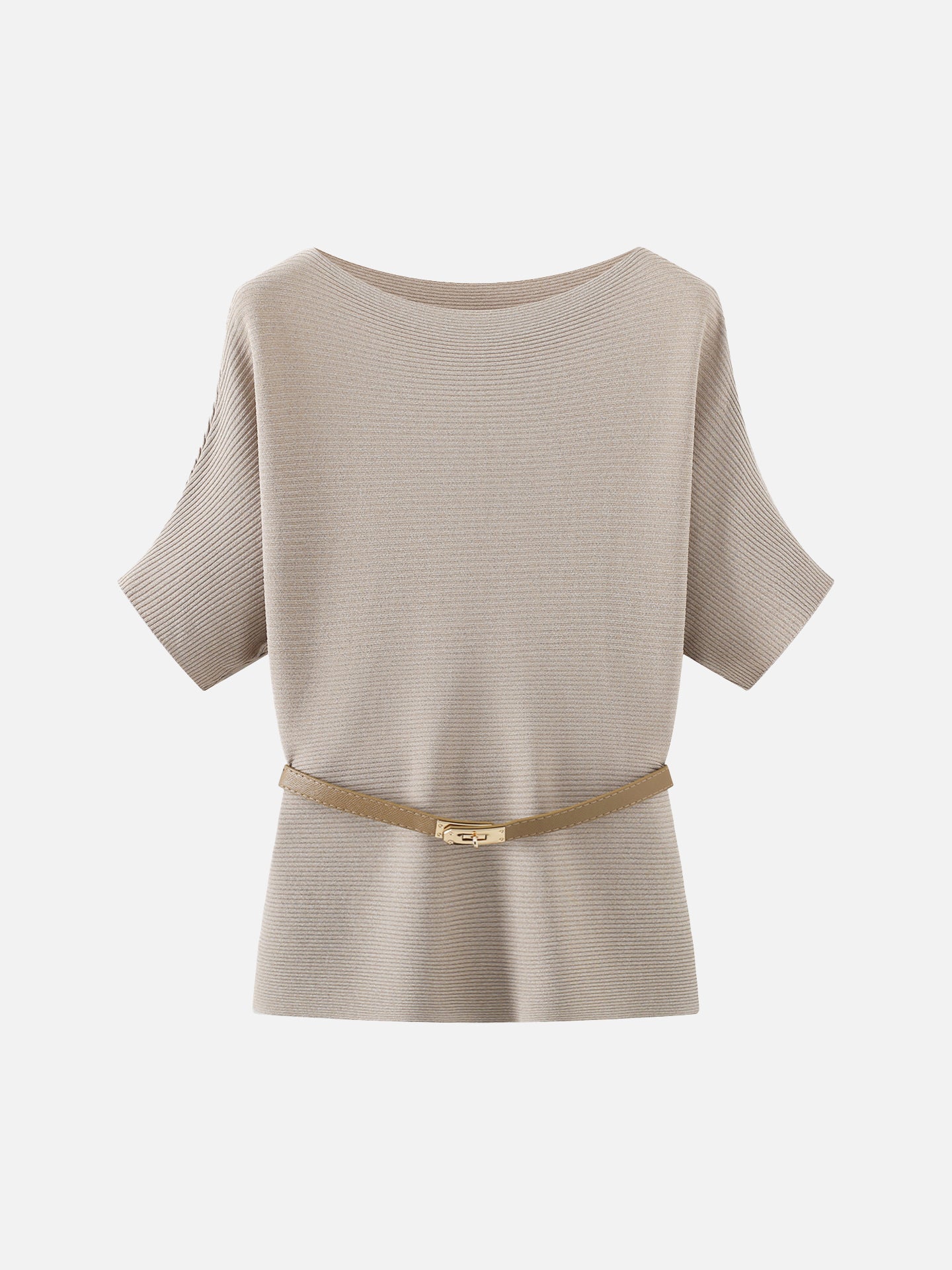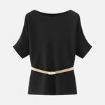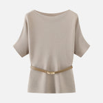 ドルマンシルエットがリラックスした着心地を提供し、半袖のデザインが季節を問わず快適に着用できます。