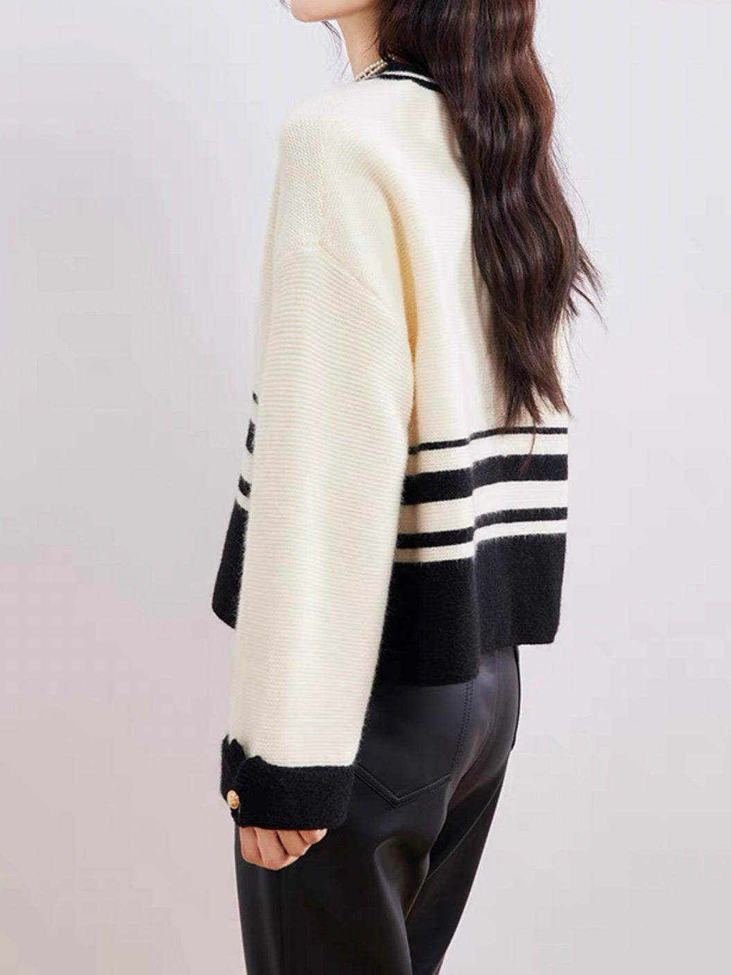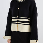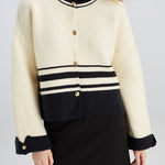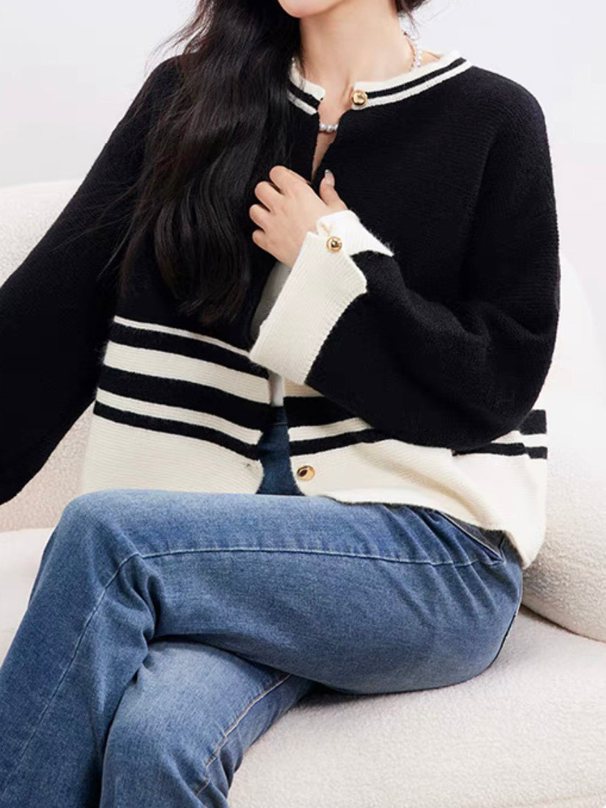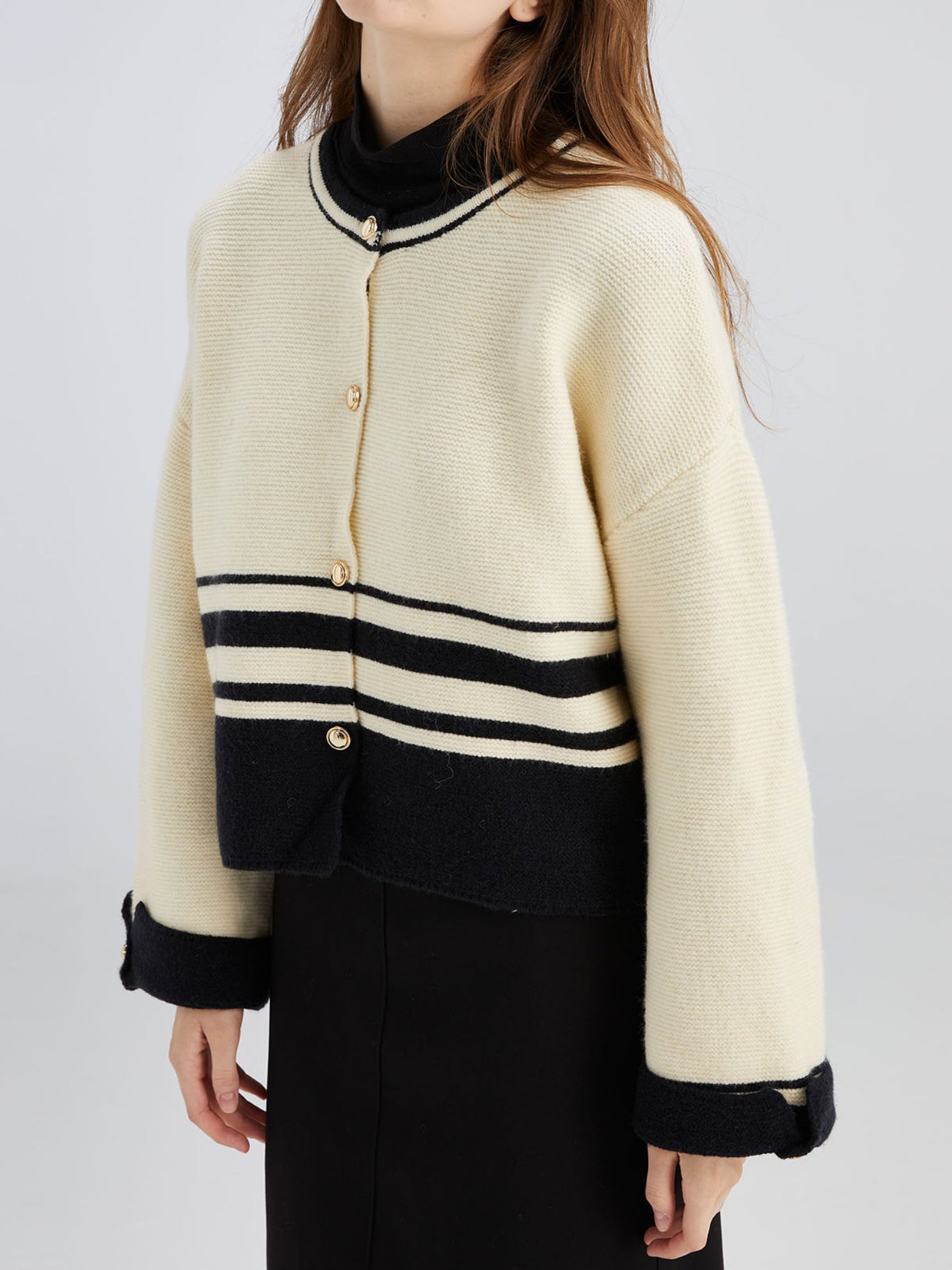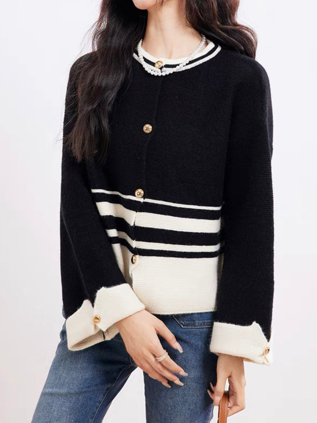 配色リズムボーダーゴールドボタンカーディガン 2色入