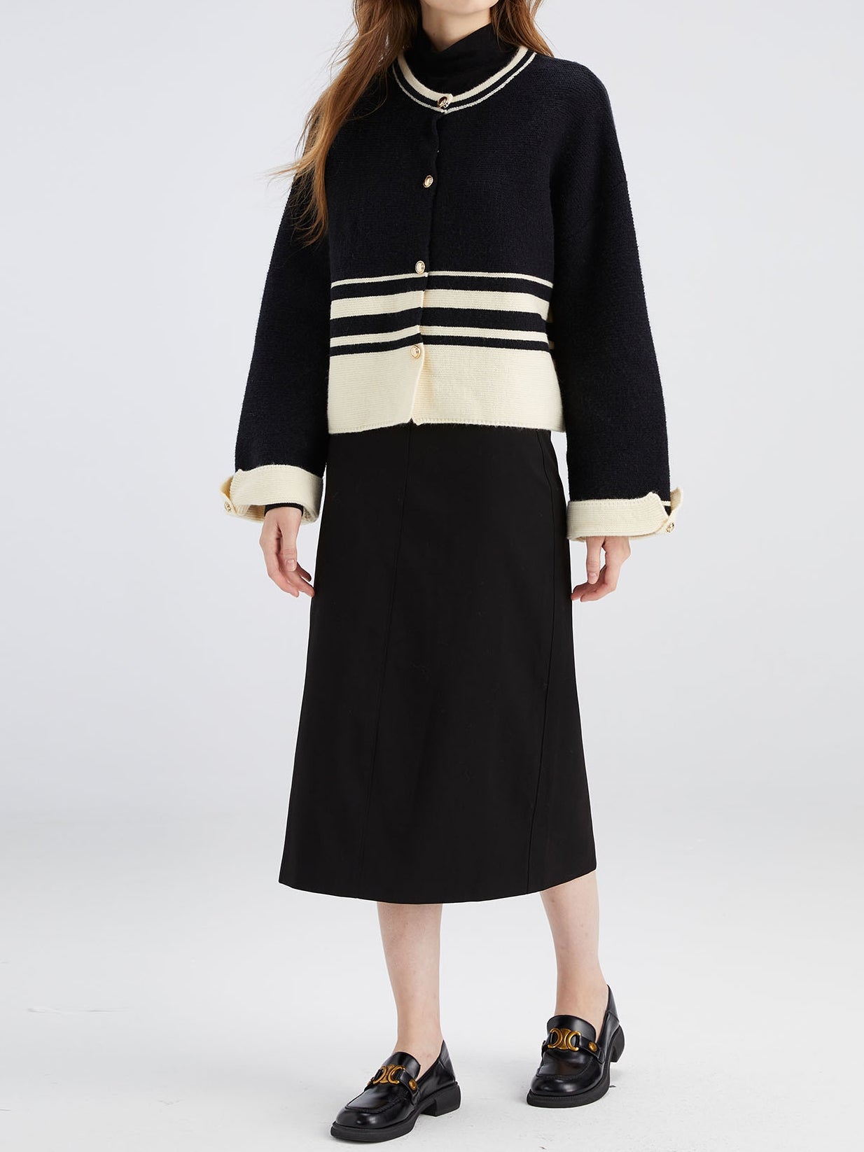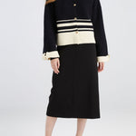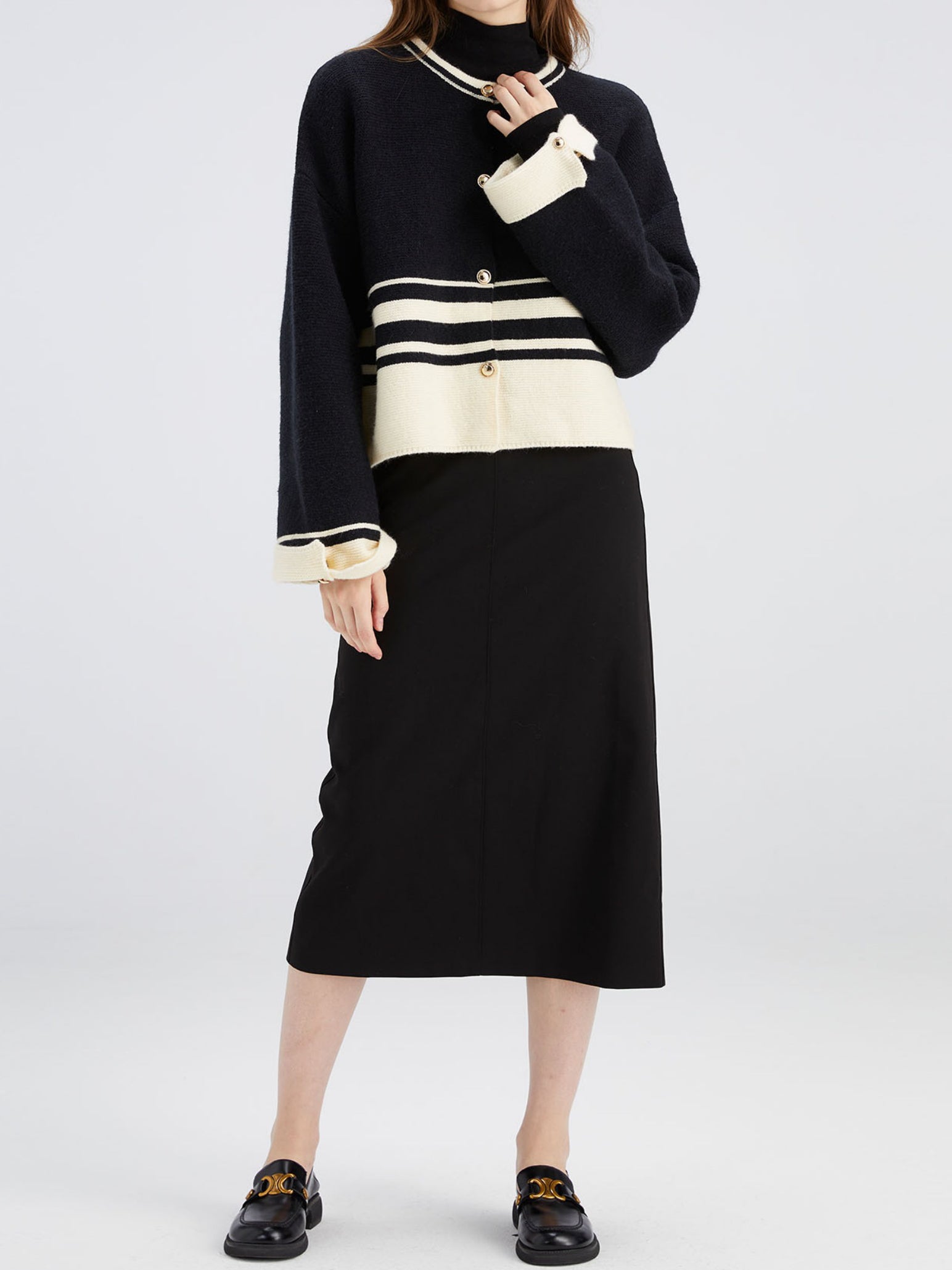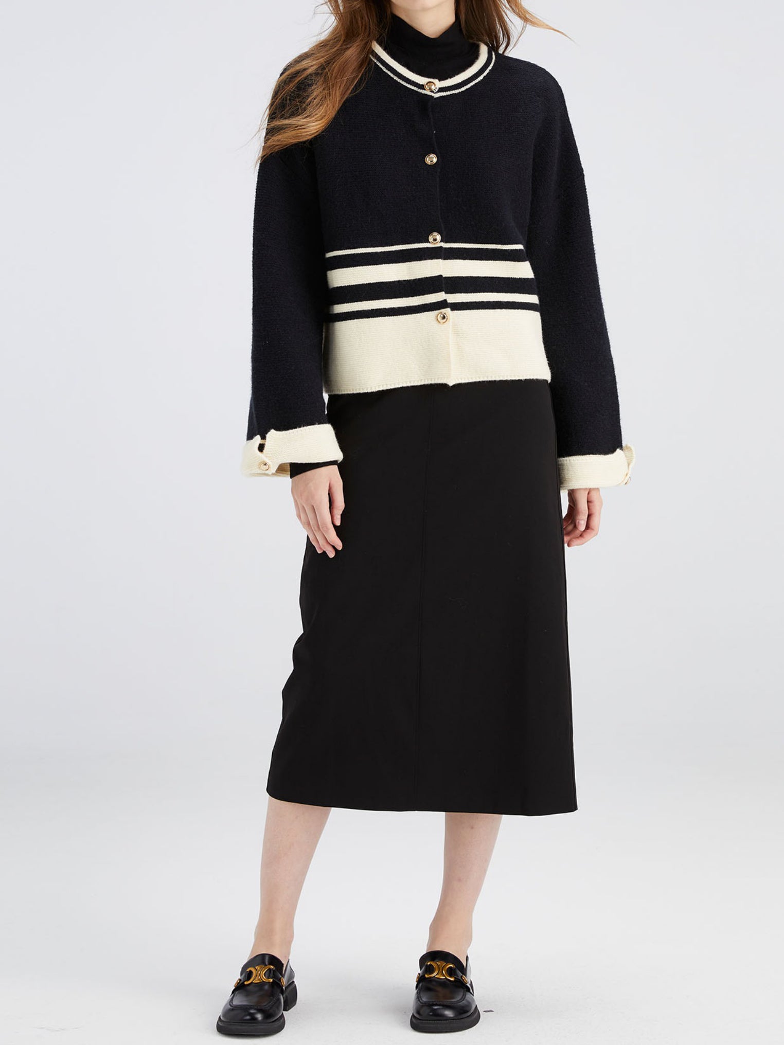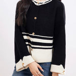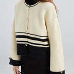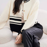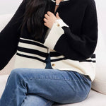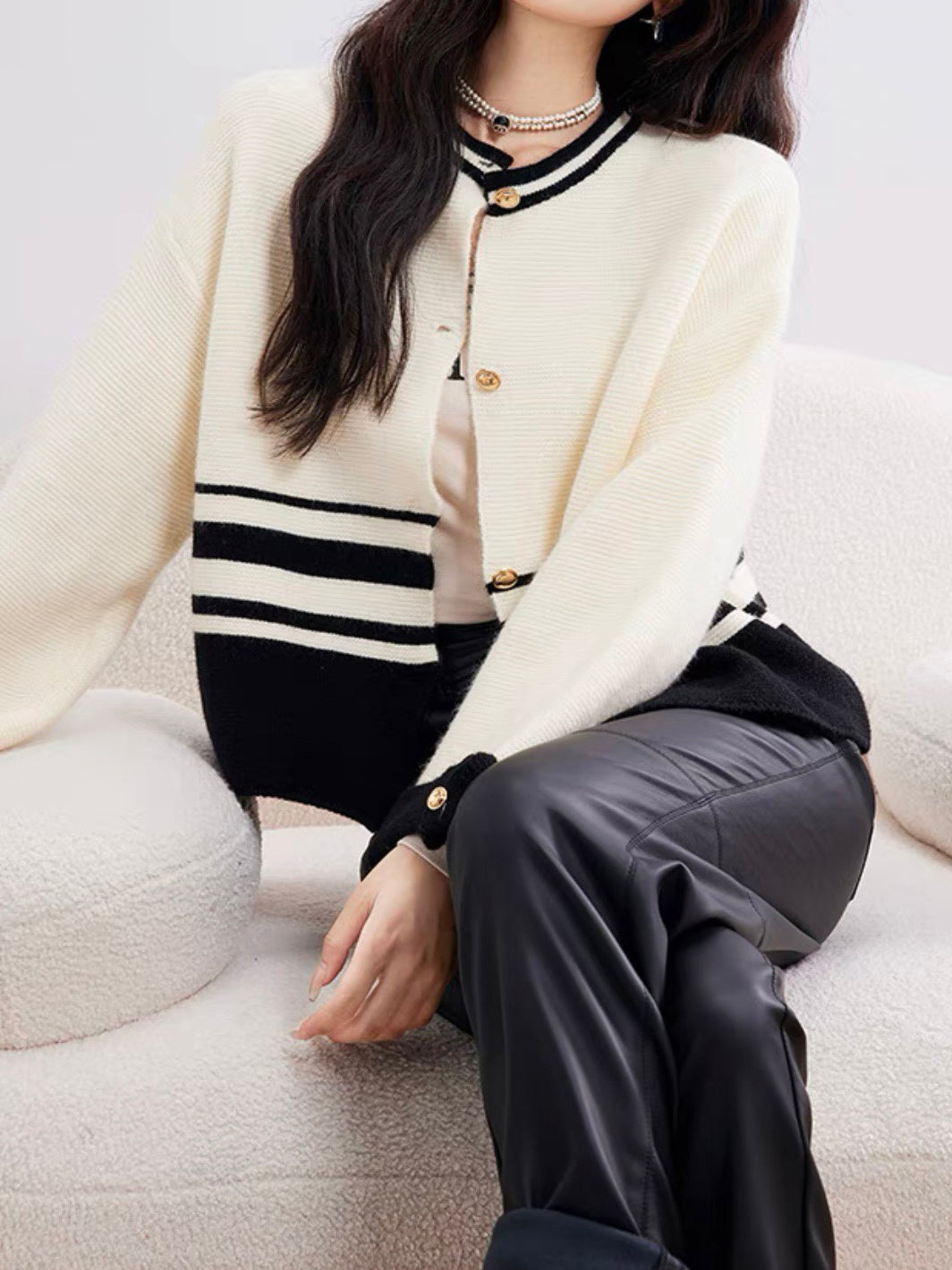 配色リズムボーダーゴールドボタンカーディガン 2色入