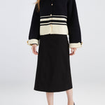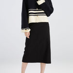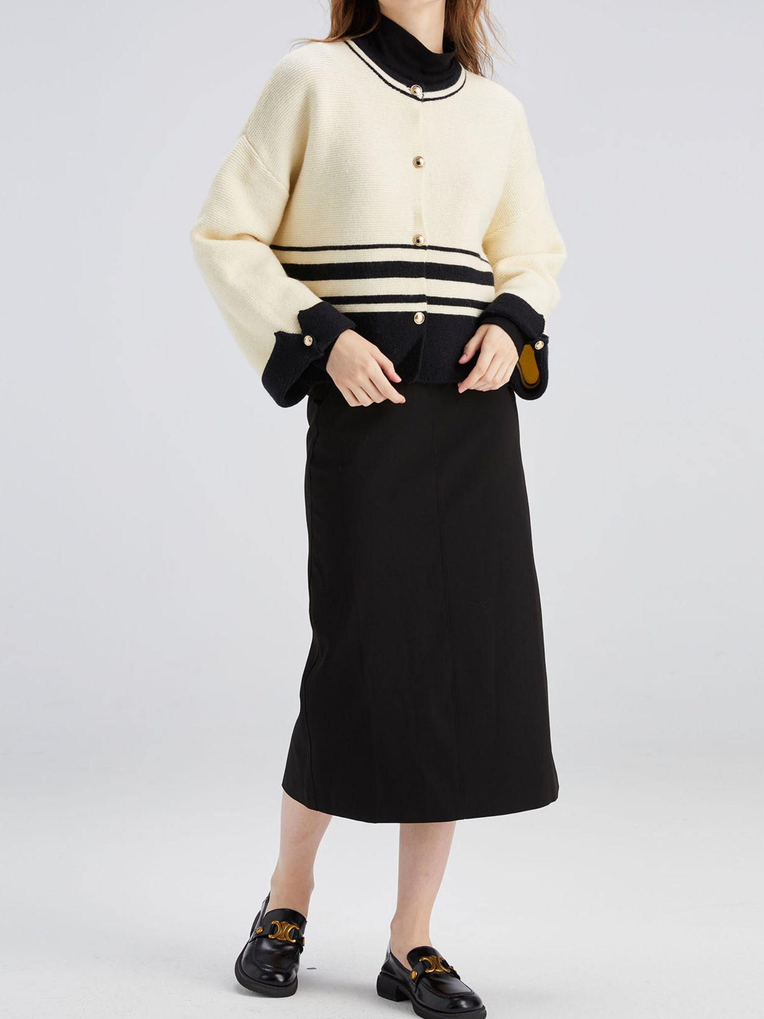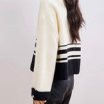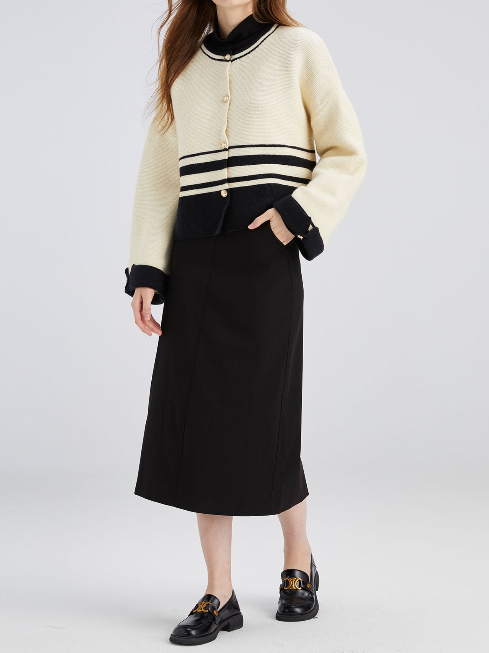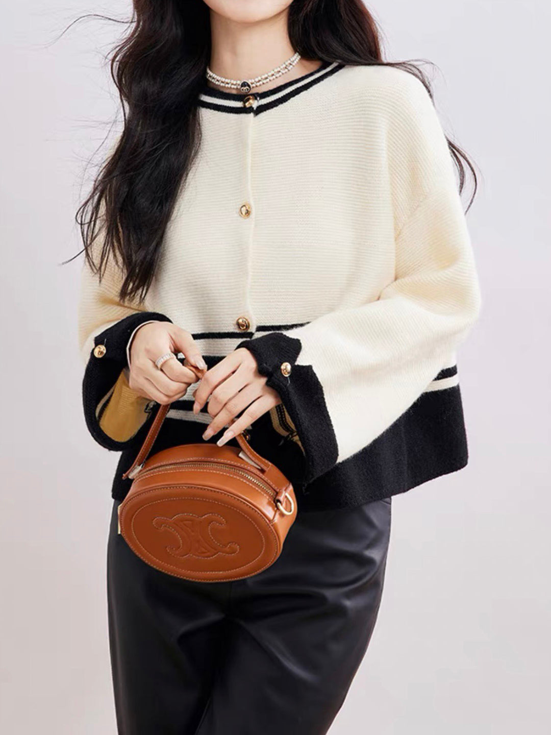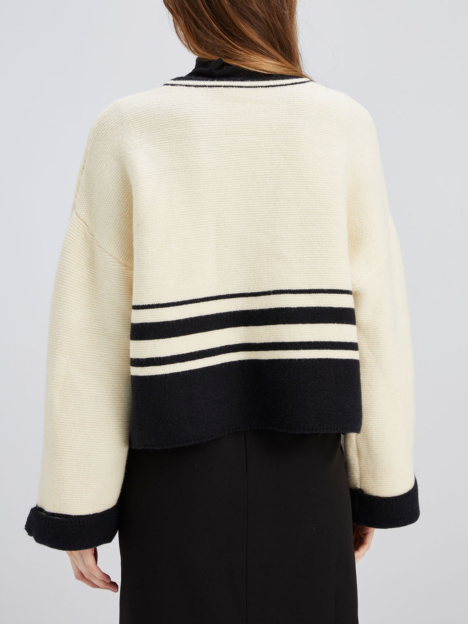 配色リズムボーダーゴールドボタンカーディガン 2色入
