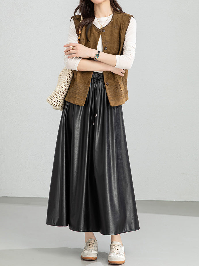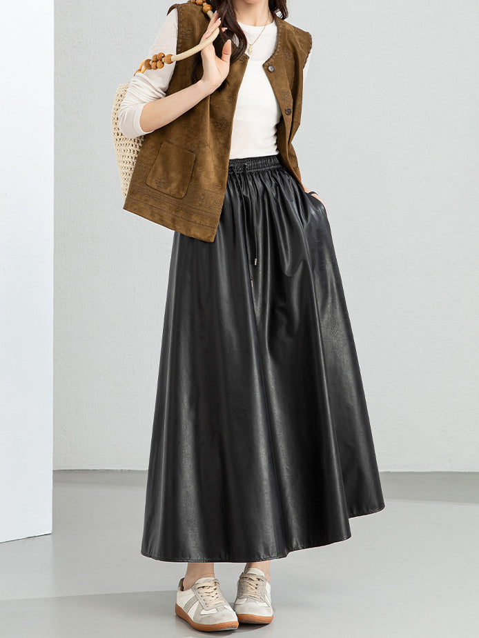 ☆大人の女性に似合う、控えめに広がるAラインとしっかり長さのあるロング丈。