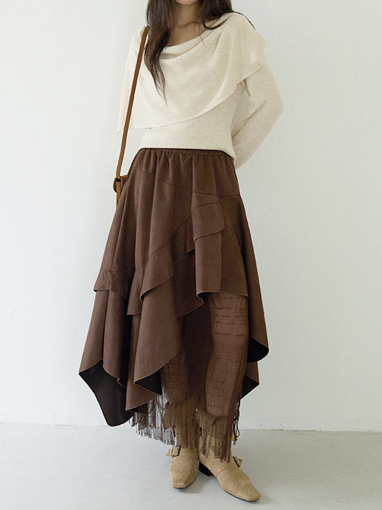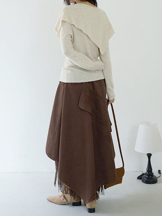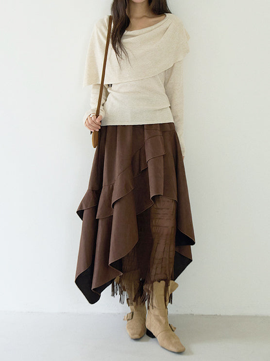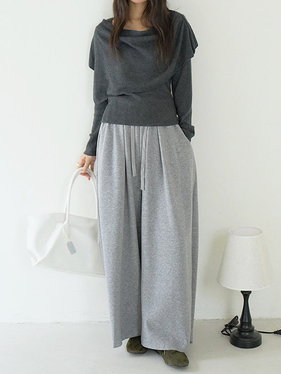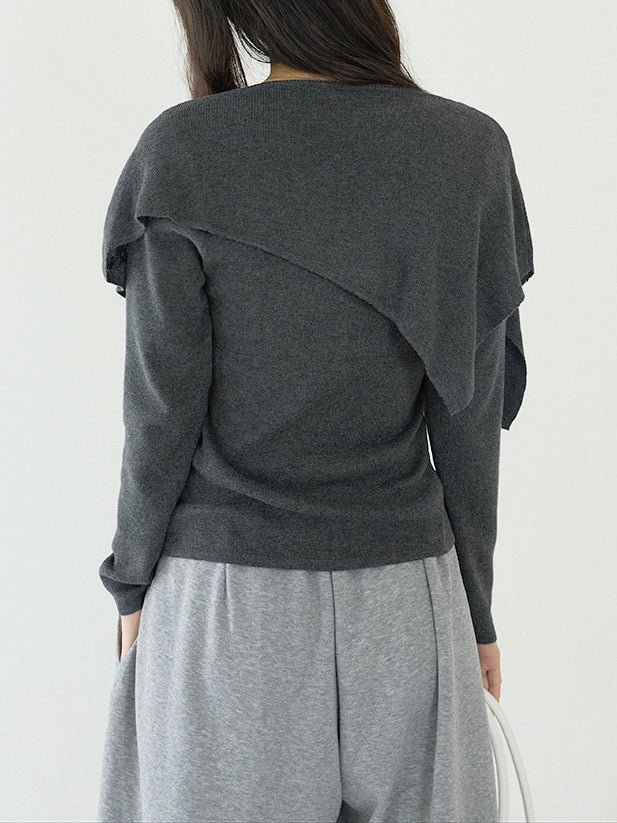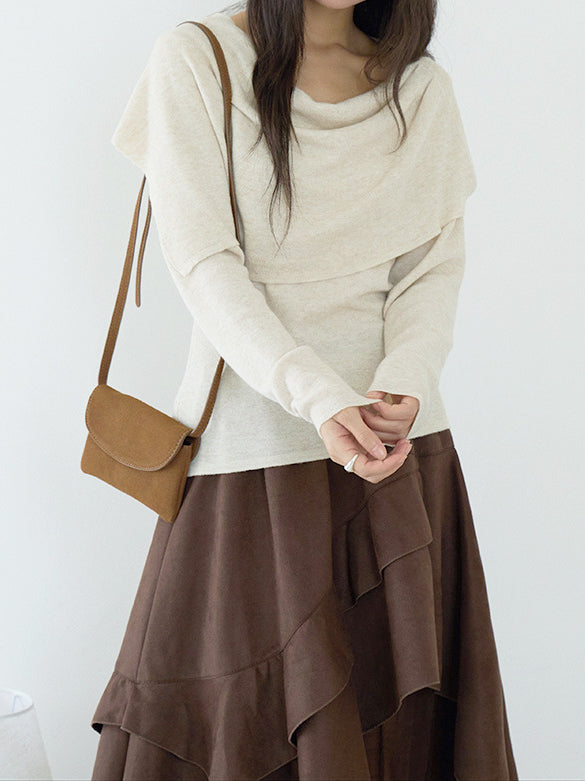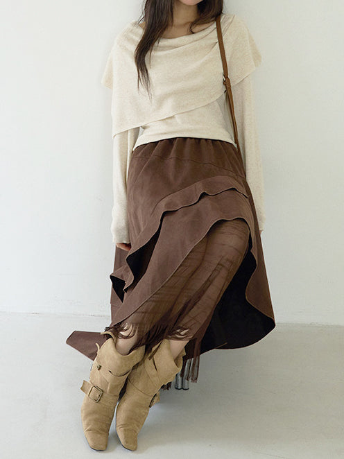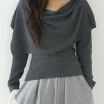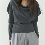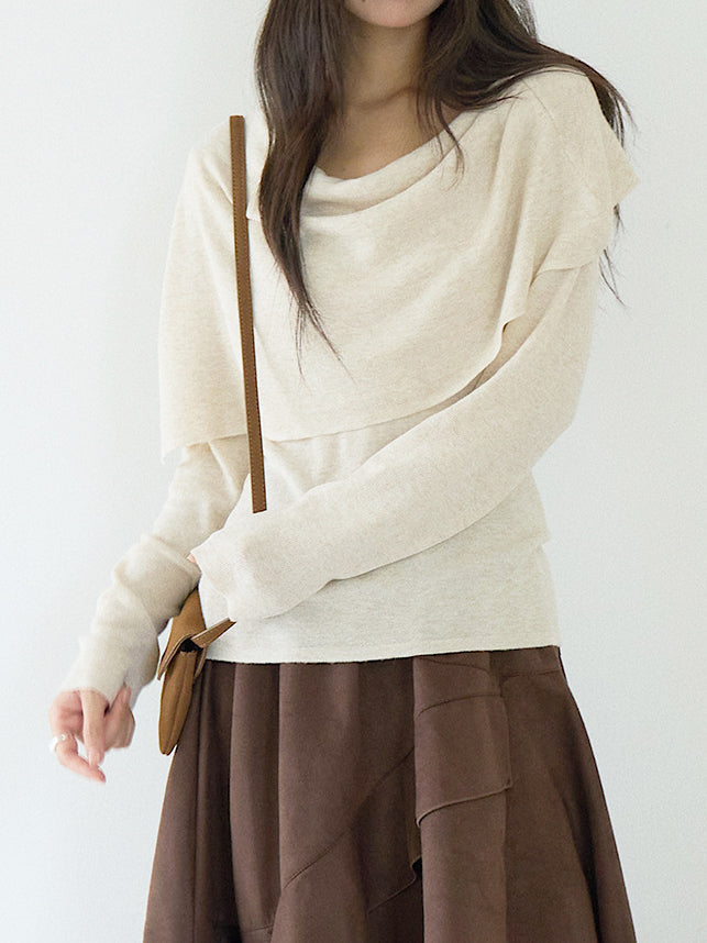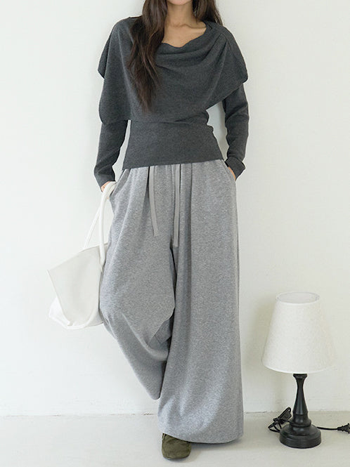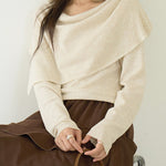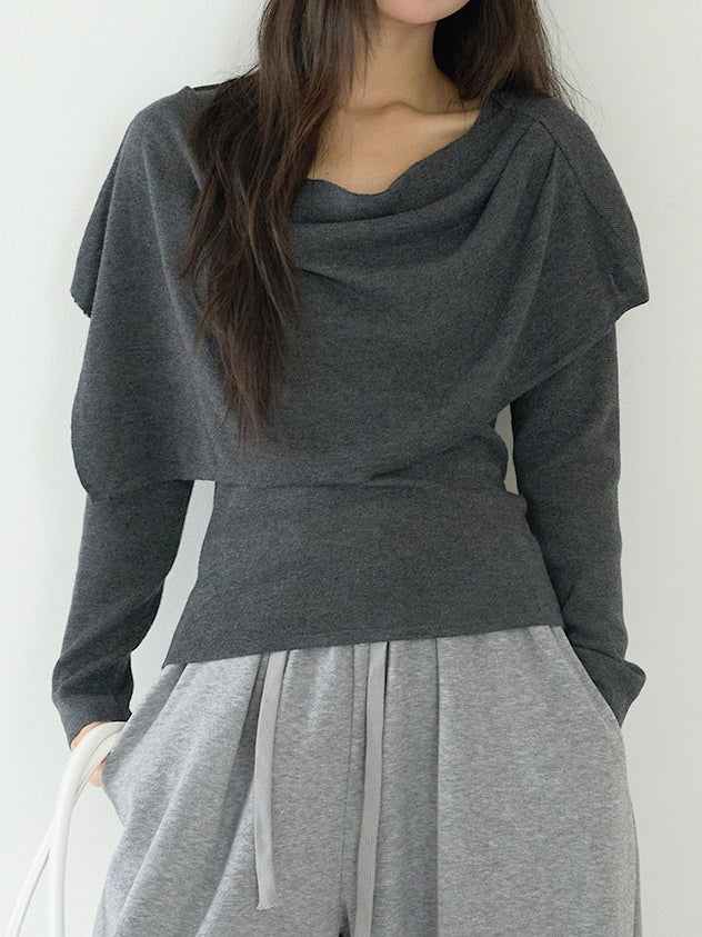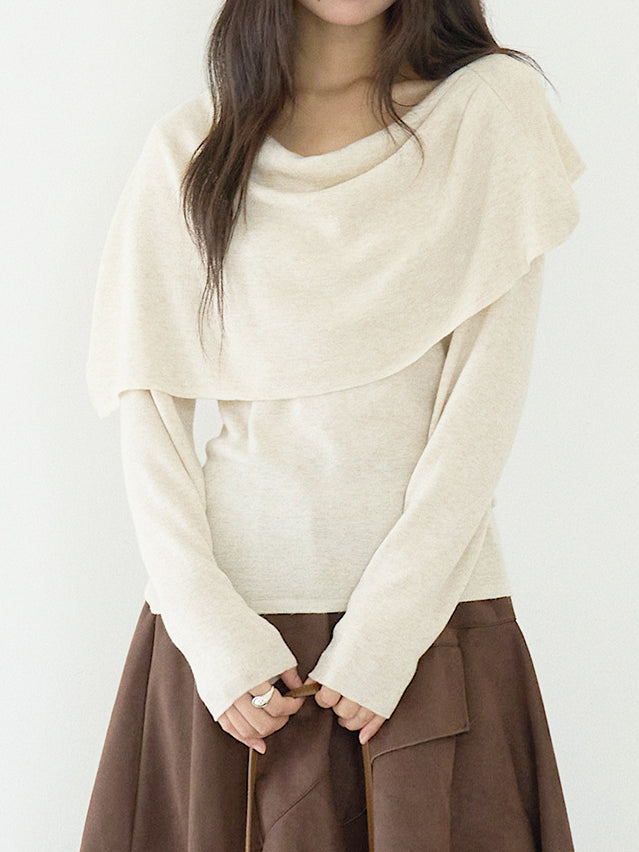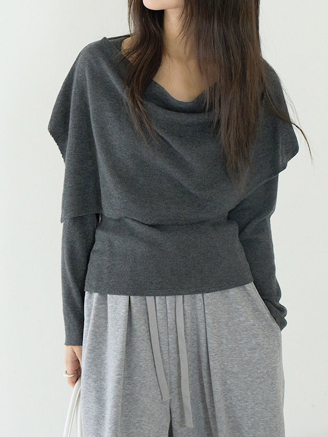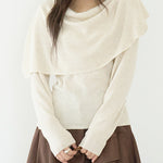柔らかなドレープケープが印象的なニットアンサンブルです。