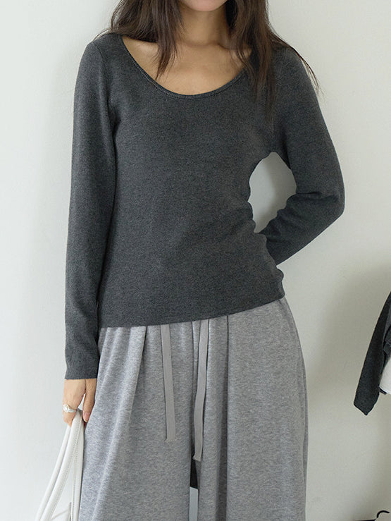 デコルテをキレイに魅せ、ラウンドネックとのレイヤードが美しく映えます。