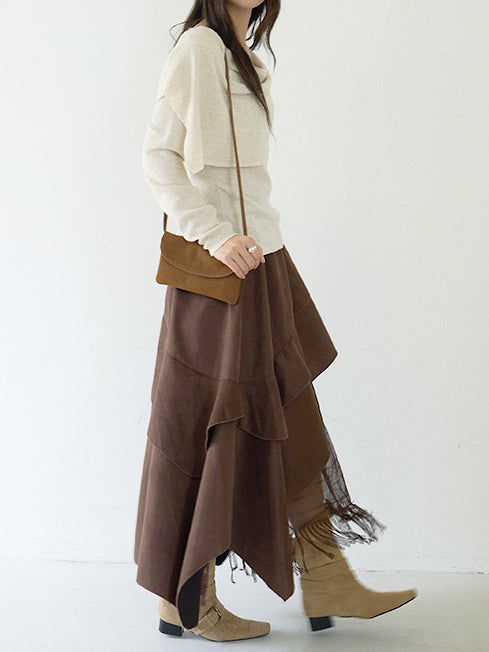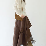 ・ボトムはシンプルなワイドパンツやフレアスカート合わせがおすすめです。