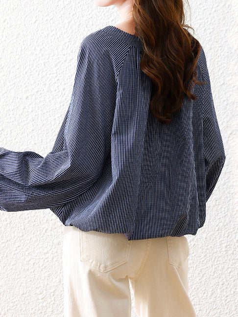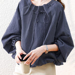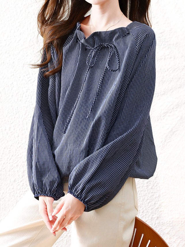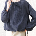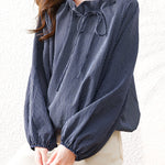 ネックにたっぷりと施されたタック如きなデザインが顔周りを華やかにしてくれる、大人フェミニンな印象のブラウス。