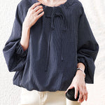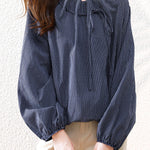 ☆袖ぐりにはゴムを入れてギャザーをよせており、程よくゆったりしたふんわりシルエットです。